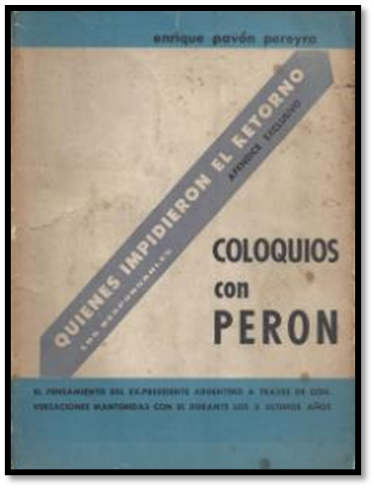 Pavón Pereyra, Enrique. Coloquios con Perón. Buenos Aires, Ed. Técnicos internacionales, 1973.
